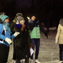 На «Зелёном острове» прошла дискотека «Горячий лед». Омичей пригласили покататься на коньках бесплатно, приглашением воспользовались горожане всех возрастов: молодые люди пришли парами и компаниями, мамы и бабушки привели детей.