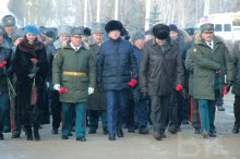 Матери, отцы и жены военных, погибших в войнах в Афганистане и на Северном Кавказе, а также при ликвидации последствий чрезвычайных ситуаций и катастроф, прошли в колонне с портретами своих близких. Они присоединлись участникам торжественной церемонии возложения цветов в парке 30-летия Победы.