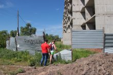 Следующим объектом стал недострой по улице Химиков,28. Именно на этой стройплощадке год назад произошли две страшных трагедии. Там погибло двое детей...