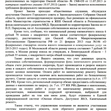 Принятие в Омской области закона «Об организации проведения капитального ремонта общего имущества в многоквартирных домах, расположенных на территории Омской области» является исполнением требований федерального закона. Проект этого закона обсуждался депутатами Горсовета и Законодательного собрания , прошел антикоррупционную проверку, был вынесен на общественные слушания. Однако, предложений по корректировке закона от представителей ассоциации собственников жилья не поступало.