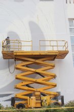 День работы уже позади, его предваряло ночное нанесение разметки: для этого используется проектор, поэтому для четкости это делается в темное время суток. В ближайшие три дня, включая сегодняшний, Алексей надеется завершить изображение. Он использует долговечные фасадные краски и краскопульт, в качестве вспомогательных инструментов фигурируют валик и киста.
