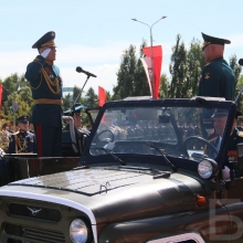 Стартовал он с воинского построения, в котором приняли участие солдаты 33-й гвардейско-ракетной армии, курсанты 242-го центра ВДВ, члены почетного караула автобронетанкового института.