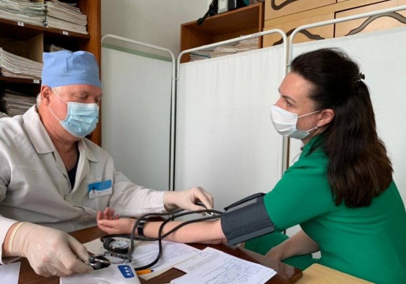 Мэр Оксана Фадина опубликовала фото, как врач ей измеряет давление.