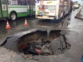 Как выяснилось в дальнейшем, автобус двигался по ул. Герцена в направлении ул. Рабиновича. В районе остановки «ТК «Флагман» пассажирский автобус задним правым колесом провалился в образовавшуюся в асфальте яму.