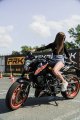 Девушки на время преодолевали полосу препятствия на авто и позировали на мотоцикле.