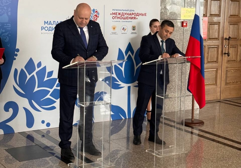 Мэр Омска Сергей Шелест с рабочим визитом посещает город Благовещенск. Уже состоялось подписание соглашения между Омском и Благовещенском. Вместе с Шелестом подпись под документом поставил мэр Благовещенска Олег Имамеев. Этим соглашением устанавливаются партнерские отношения и информационное сотрудничество между городами.