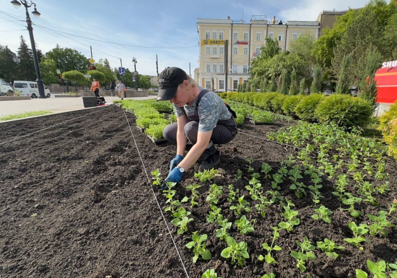 С начала мая в городскую среду высажено более 110 тысяч цветов, среди которых сальвии, петунии, бегонии, бархатцы и другие декоративные растения.
