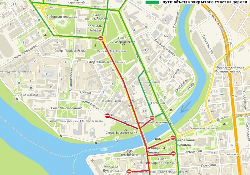 Возможные маршруты объезда проходят по улицам Интернациональная, Гагарина и по проспекту К. Маркса.
