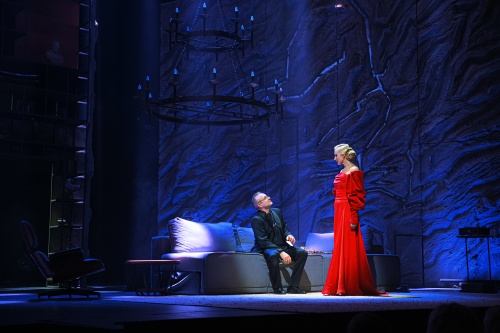 Более 20-ти лет Марту и Джорджа связывают отношения «любовь-ненависть», находящиеся между жестокостью и нежностью, диким одиночеством вдвоем и мучительной зависимостью друг от друга. Возможно, такие душевные противоречия выражают внутренние конфликты. Анна Ходюн и Александр Гончарук точно передают состояние душевной неустойчивости и дуальность характеров своих героев. Уже в начале спектакля Джордж, погруженный в полумрак, находится наедине со своими мыслями. Он всегда будет уходить в себя после вспышек гнева, вызванных на почве ссоры с Мартой: то пронзительно заиграет одинокое соло на саксофоне, то процитирует стихотворение О. Мандельштама «В самом себе, как змей таясь…», в котором зазвучит тема самопознания, утраты и стремления к более высокому состоянию души. В такой отстраненности Джорджа скрывается не только одиночество и чувство трагизма, но и любовь к своей жене. Его глубинное воспоминание-вспышка вызовет образ Марты. Перед ним предстанет Она — идеал жены и красоты в огненно-красном платье. Ария будет сопровождать ее короткий, но такой запоминающийся выход. Безмолвная и нежная Марта — это тот образ, который несмотря ни на что не дает погибнуть их любви. Но правда их реальной жизни иная: Марта изначально кажется той самой женой, унижающей, отпускающей язвительные остроты в те минуты, когда отрывается от бокала. Но за этой маской скрывается несчастная женщина. Именно одиночество порождает это душевное противоречие «ненавижу и люблю» Марты и Джорджа.