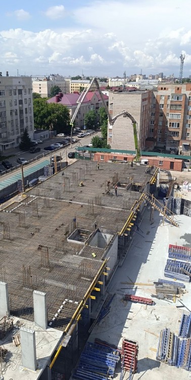 Привлекает внимание корпус № 1, где уже завершается возведение каркаса первого этажа. Высота помещений — 5,4 метра, что открывает уникальные возможности для организации антресольного этажа. Это позволит создать просторные, светлые и презентабельные коммерческие площади, идеально подходящие для размещения представительств стабильных компаний.
