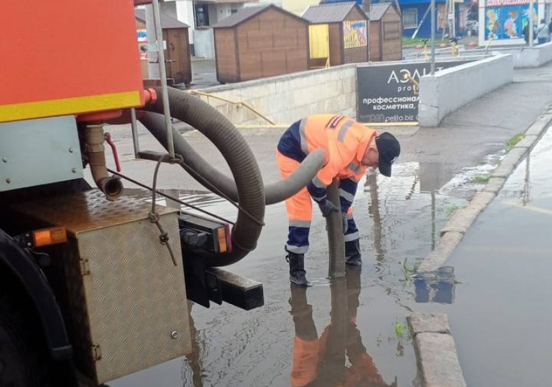 Для устранения последствий непогоды применяются мотопомпы и ассенизационная техника. Всего в дневную смену во всех видах работ по содержанию города задействовано 265 единиц спецтехники и 344 сотрудника УДХБ, сообщил мэр Сергей Шелест.