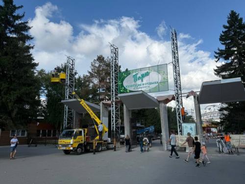 Администрация парка им. 30-летия ВЛКСМ Омска завершила реставрацию, вернувшую историческую вывеску на центральный вход. Входная группа, украшенная яркими растяжками, готовится к завершению косметических работ.