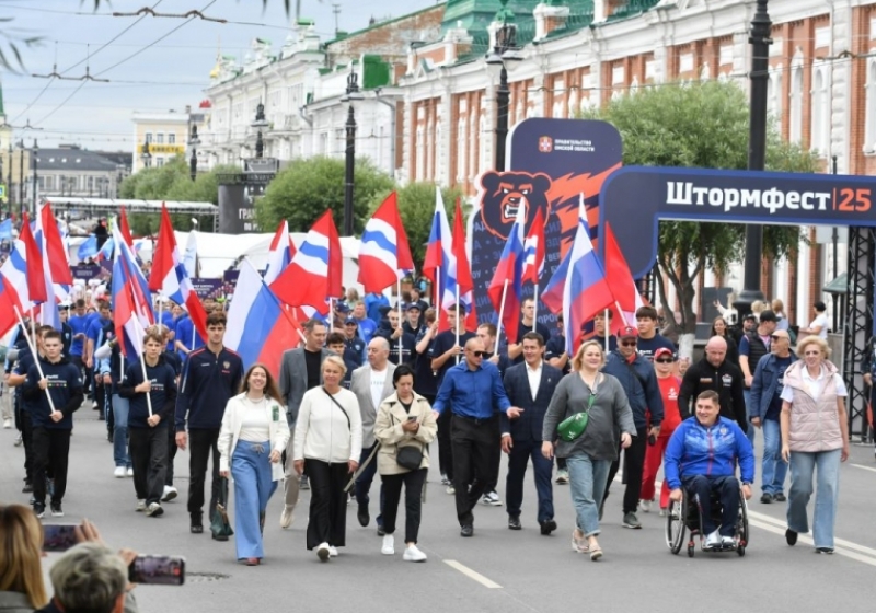 В Омске впервые прошел парад в честь Дня физкультурника. Спортсмены прошли от Аллеи олимпийцев до главной сцены на «Пешеходном Любинском».