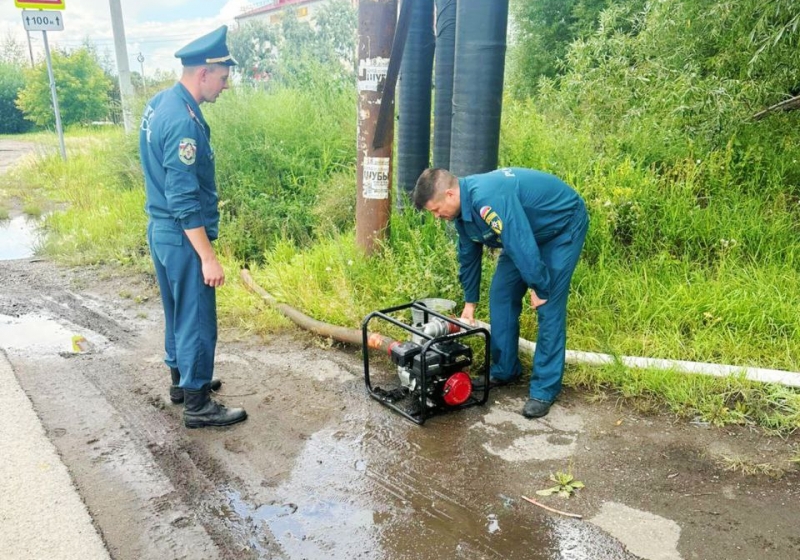 Тем временем сотрудники МЧС вместе с муниципальными службами ведут земляные работы по отводу дождевой воды: прокладывают траншеи, откачивают воду, очищают ливневые стоки и водоотводные каналы.