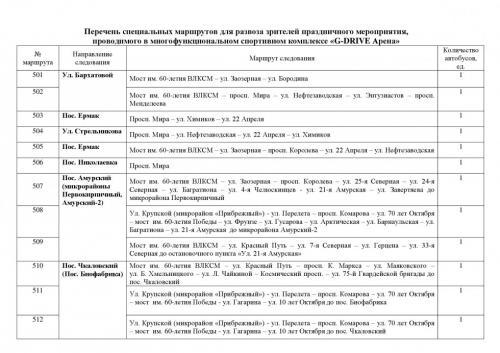 Подача автобусов будет осуществляться на специальные остановочные пункты, расположенные рядом с G-Drive Ареной. Для развоза зрителей будут задействованы специальные маршруты № 501-520.