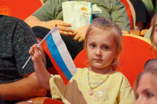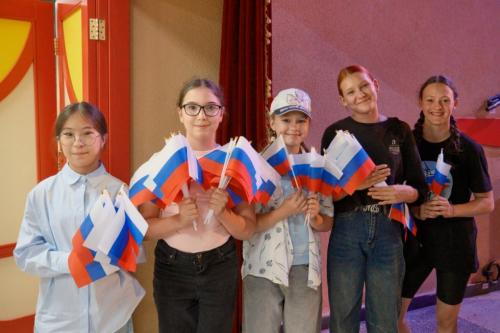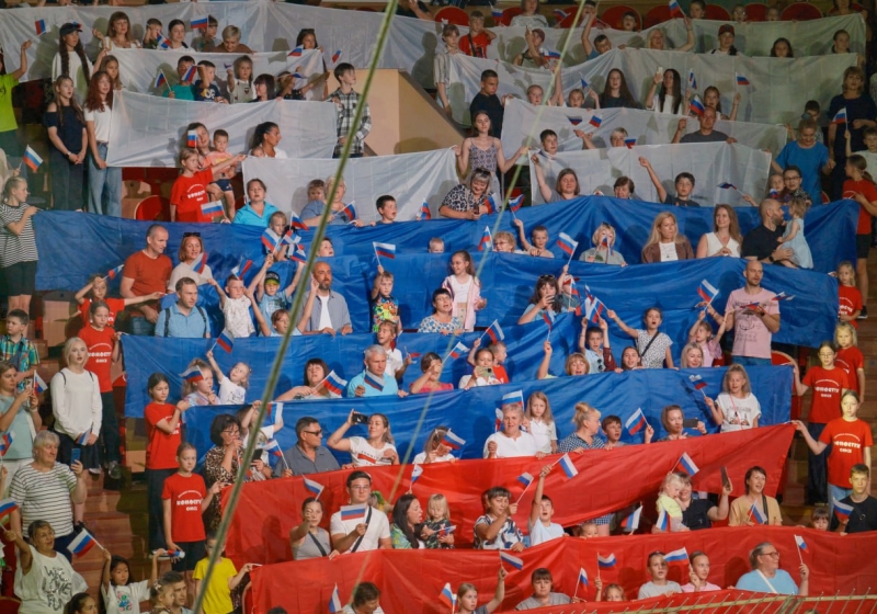 В Омском цирке зрители подняли 1 600 флагов и развернули два огромных триколора в честь Дня Государственного флага.