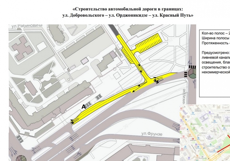 Стали известны подробности реализации проекта строительства транспортной развязки в границах улиц Добровольского — Орджоникидзе — Красный Путь.