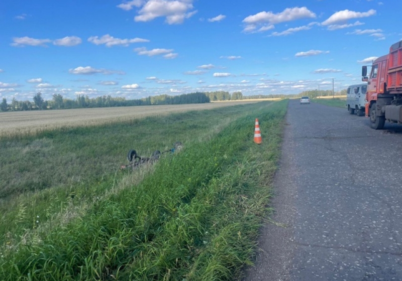 32-летний водитель мотоблока при движении по автодороге из села Сосновское в деревню Садовая не справился с управлением и опрокинул транспортное средство в левый по ходу движения кювет.