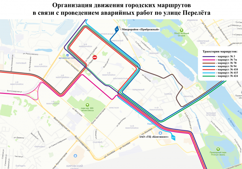 Как сообщили в департаменте транспорта администрации Омска, в период с 23:30 12 сентября до 5:30 15 сентября из-за ремонтных работ по улице Перелёта движение городского пассажирского транспорта будет организовано по временным изменённым схемам: