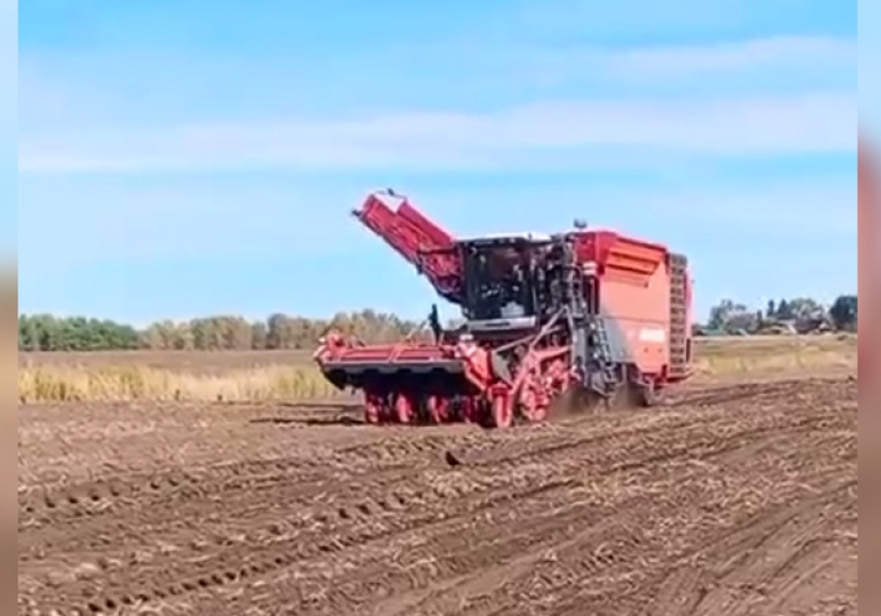 В Саргатском районе Омской области к уборке урожая картофеля 2025 года приступил первый самоходный картофелеуборочный комбайн.