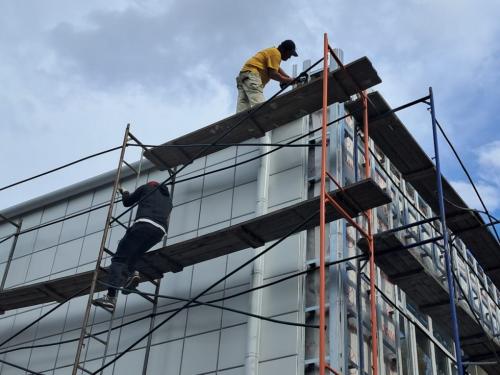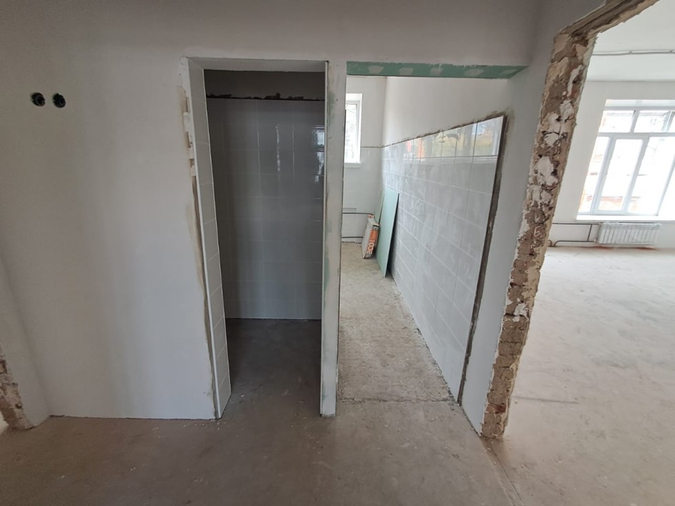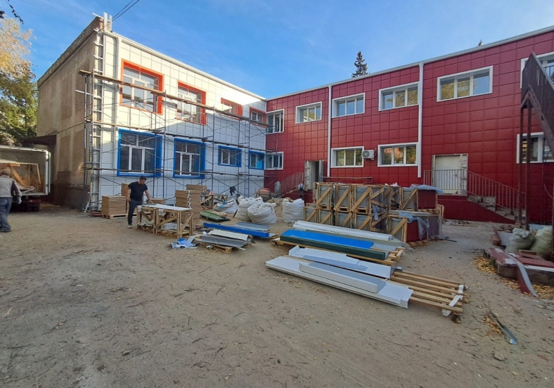 На сегодня строители завершили замену кровли и приступили к монтажу нового фасада двухэтажного корпуса. Внутри уже ведётся замена инженерных систем и подготовка стен и полов в группах и общих помещениях к ремонту.