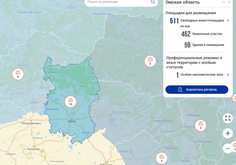 Добавим, что ранее была опубликована статистика посещения Инвестиционной карты России. Омская область по этому показателю заняла 17 место из 89 субъектов РФ. Помимо инвестпредложений регион на Инвестиционной карте России представлен 511 инвестиционными площадками: 452 земельными участками под строительство и 42 имущественными комплексами, среди которых промышленные площадки, свободные площадки для малого бизнеса.