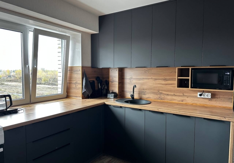 Кроме того, полностью оборудована кухня — новый гарнитур, стол, стулья, робот-пылесос, окна с дистанционным управлением и умные шторы на электроприводе.