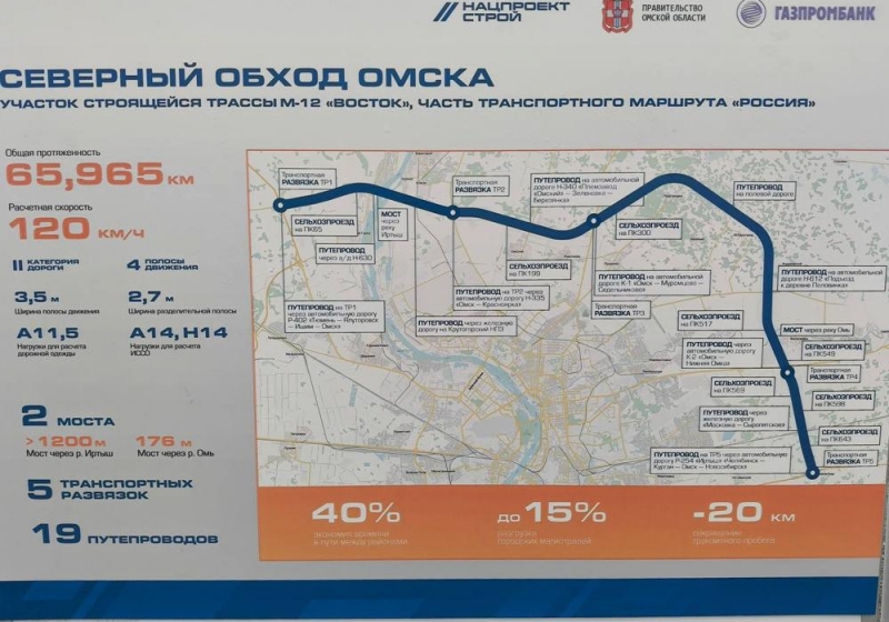 «Строительство «Северного обхода» Омска — значимый проект для транспортной системы России. Почти 66 километров дороги напрямую свяжут федеральные трассы на Тюмень и Новосибирск. Это позволит сократить пробег транзитного транспорта более чем на 20 километров, разгрузив город Омск. Со стороны федерального бюджета с 2026 по 2030 годы на этот объект предусмотрено более 27 миллиардов рублей», — отметил Андрей Никитин.