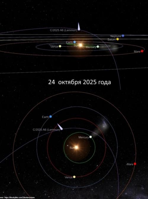 Комета C/2025 A6 сейчас находится в созвездии Большой Медведицы и постепенно приближается к Земле.