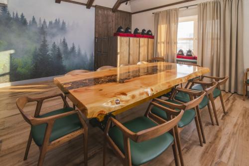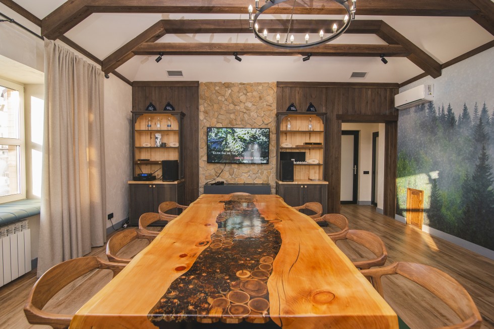 Интерьер оформлен в натуральных тонах с использованием природных материалов, оборудован электрокамином, караоке для любителей пения, так же есть настольные игры для компании- скучать не придется.