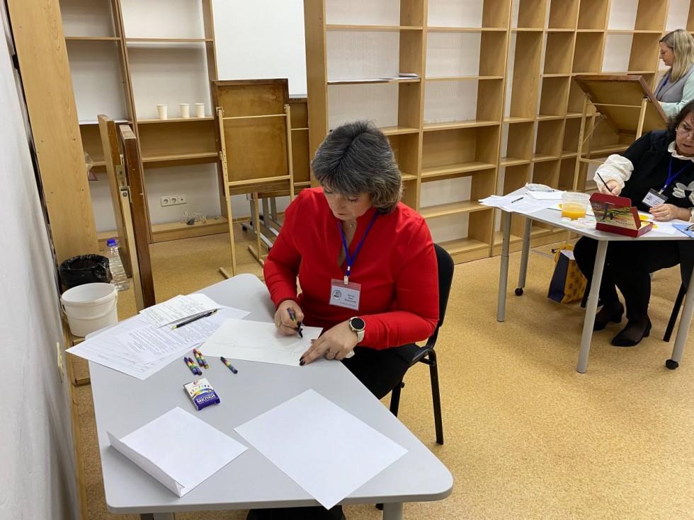 Педагоги продемонстрировали оригинальные методы преподавания и выполнили практическое задание — создание рисунка на заданную тему.