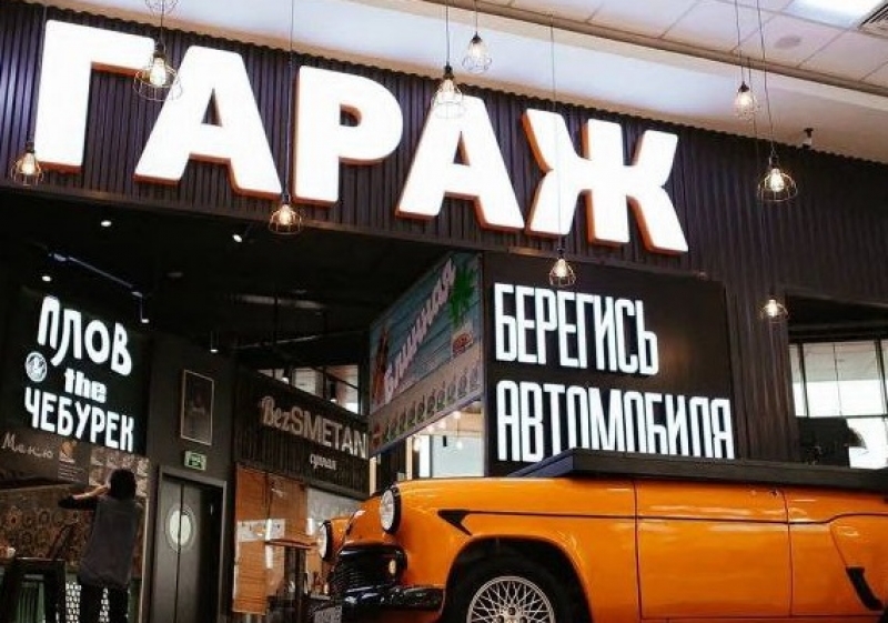 «Гараж» позиционировал себя как первый фудмаркет в Омске. Здесь на одной локации располагались несколько точек общепита. Изначально он объединял семь разных ресторанных концепций.
