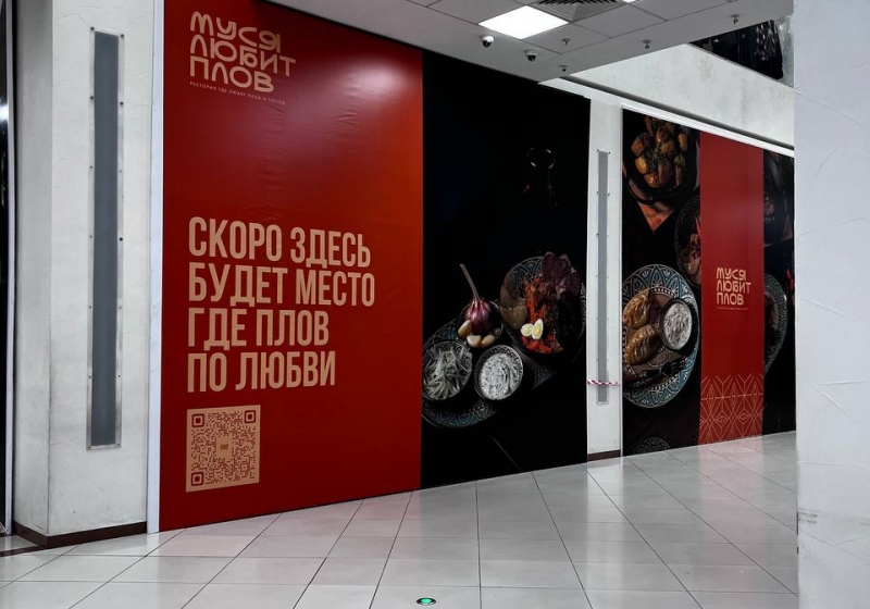 Согласно баннеру, здесь появится заведение «Муся любит плов». Напомним, что такой ресторан уже работает в Омске. Он был открыт в сентябре текущего года на бульваре Архитекторов.