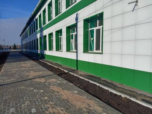 Это учебное заведение сейчас находится на этапе капитального ремонта. И одновременно, по инициативе местных жителей, из областного бюджета привлечены средства для создания удобной и современной площадки — с асфальтом и тротуарной плиткой.