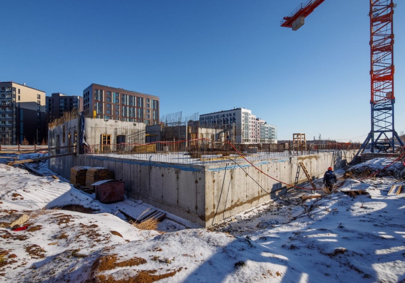 По данным на текущий момент, строители завершили ключевой подготовительный этап: выполнены земляные работы, сооружен цокольный этаж и готова чаша будущего плавательного бассейна. В настоящее время ведутся работы по возведению стен первого этажа и гидроизоляции цокольной части здания.