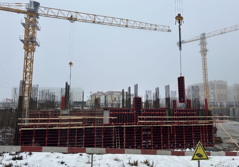 В настоящее время на жилом корпусе ведутся монолитные работы в цокольном этаже. В разных секциях готовность железобетонных конструкций цокольного этажа составляет от 15% до 75%.