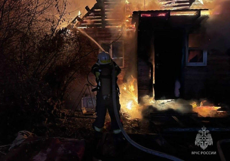 Сегодня ночью в 01:24 в Кировском округе города Омска в садоводстве «Авангард-2» горел жилой дом.