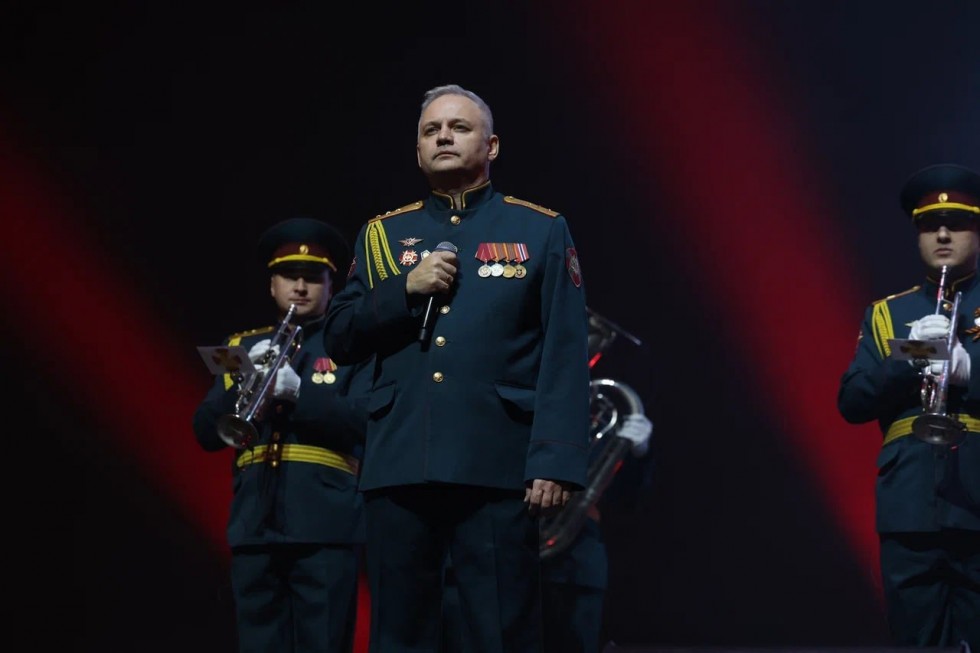 Эмоционально запомнился выход участника СВО Абдулмуталипа Гайирбегова с российским флагом под песню «Встанем» в исполнении оркестра — зал встретил его стоя.