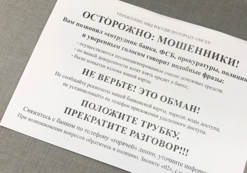 Прокуратура сообщила, что 18 декабря в полицию обратился инженер одного из омских предприятий, который рассказал, что в ходе телефонного разговора неизвестные лица обманным путем убедили его в целях сохранности перевести свои накопления на «безопасный счет».