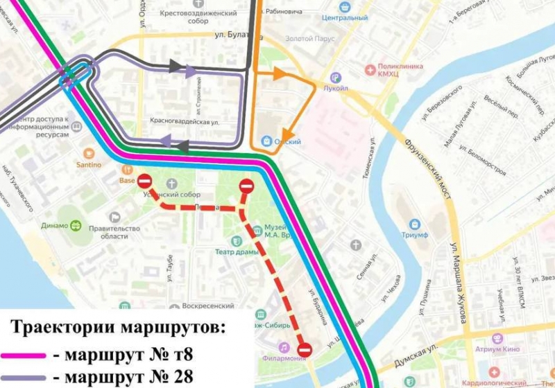 Общественный транспорт временно поедет по изменённым схемам, напомнила мэрия.