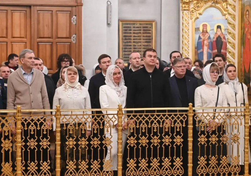 Губернатор Омской области Виталий Хоценко с супругой сегодня ночью приняли участие в Рождественской службе в храме Рождества Христова.