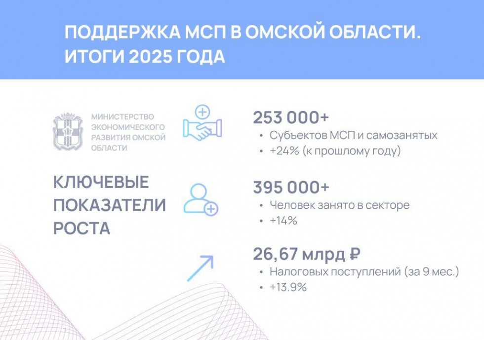В Омской области за 2025 год отмечен заметный прогресс в поддержке малого и среднего бизнеса. Так, опубликованы итоги работы регионального Минэкономразвития.
