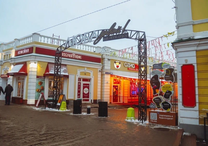 Но при этом все сопровождающие элементы должны быть на русском языке. Это касается описания услуг и слоганов, указания вида объекта (например, coffee shop), меню и навигации, промо-надписей на витринах. Как объясняет Наталья Ландышева, иностранный вариант возможен только при наличии равнозначного русского текста.