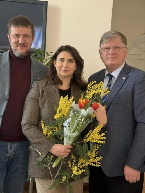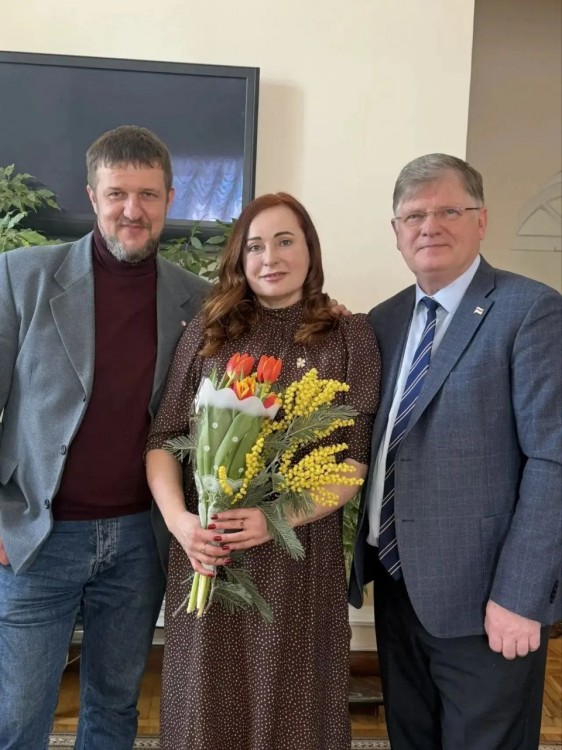 Так, член общественного совета проекта Александр Кузюков вместе с ветераном спецоперации, депутатом городского Совета Дмитрием Шарушинским вручили женщинам-депутатам поздравления и пожелания.