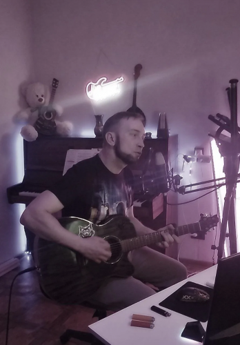 Всё изменилось в 12 лет, когда в школе открылся бардовский кружок. Увидев, как рыжеволосая девушка играет на гитаре, он загорелся идеей научиться сам. Дома нашлась старая гитара, подаренная когда‑то отцу. Первые аккорды — Am, Dm и Em — показал отец. Дальше обучение шло во дворе: друзья делились опытом, учили новым аккордам.