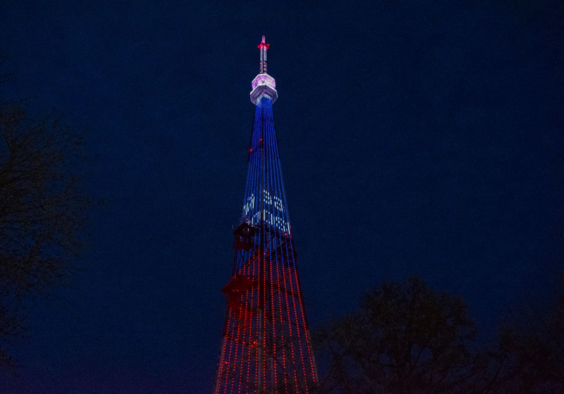 Ключевой элемент кампании — диджитал‑трансляция минутного видеоролика на конструкции Омской телебашни. Визуальное оформление ролика выполнено в цветах российского триколора.
