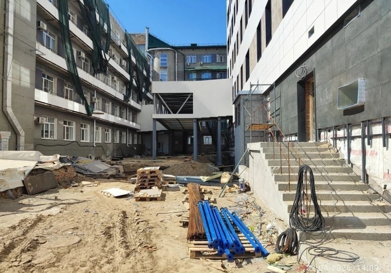 Ранее сообщалось о завершении монтажа фасада в здании нового операционного корпуса КМХЦ. В операционном корпусе 7 этажей, общая площадь здания составила 6,7 тысяч кв. м.
