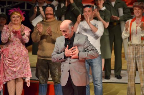 Мюзикл «Золотой теленок» в Омском музыкальном театре. Композитор Тихон Хренников, режиссер-постановщик и хореограф – лауреат премии «Золотая маска» Гали Абайдулов (СПб), дирижер-постановщик – дипломант премии «Золотая маска» Дмитрий Лузин, художник-постановщик – дипломант международных и всероссийских театральных фестивалей Кирилл Пискунов (СПб)