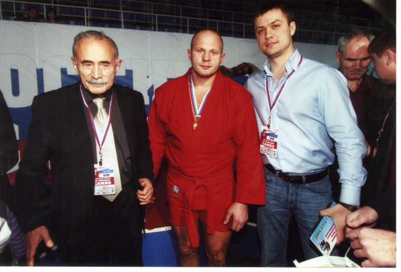 Встреча на турнире. Бывший сенатор от Омской области, президент Ассоциации работников правоохранительных органов Асламбек Аслаханов, Федр Емельяненко и Владислав Юрьев.