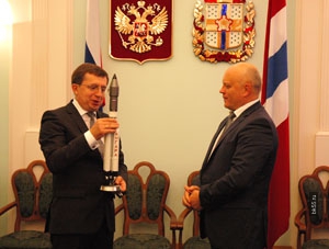 Губернатор Виктор Назаров и исполняющий обязанности гендиректора ФГУП «ГКНПЦ им М.В.Хруничева» Андрей Калиновский сегодня в Омске, как сообщается, «предметно обсудили вопросы деятельности омского филиала космического холдинга - производственного объединения «Полет». Речь, в частности, шла о подготовке кадров для предприятия, уровне зарплаты сотрудников, программе социальной поддержки заводчан.